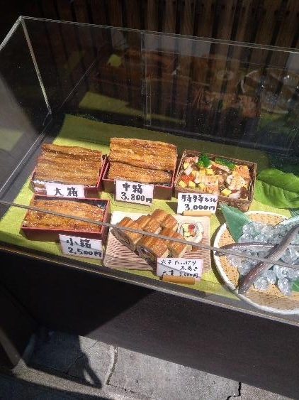 おみやげのお品書きは、「あなごたっぷり太巻き」「あなごちらし」「あなごの押し寿司」、そして各種「箱めし」。両親へのお土産だったので、分けやすく見た目も華やかな太巻きを選びました。