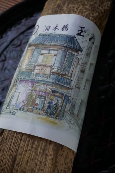 包み紙には、風情ある日本橋本店の店構えが温かいタッチで描かれていて、ずっしりと重い。