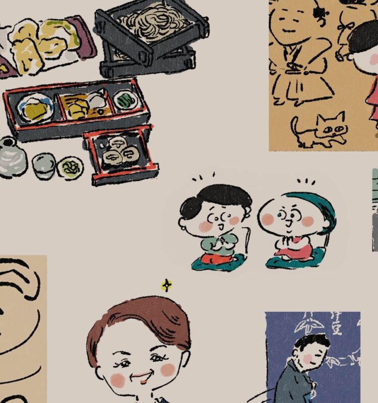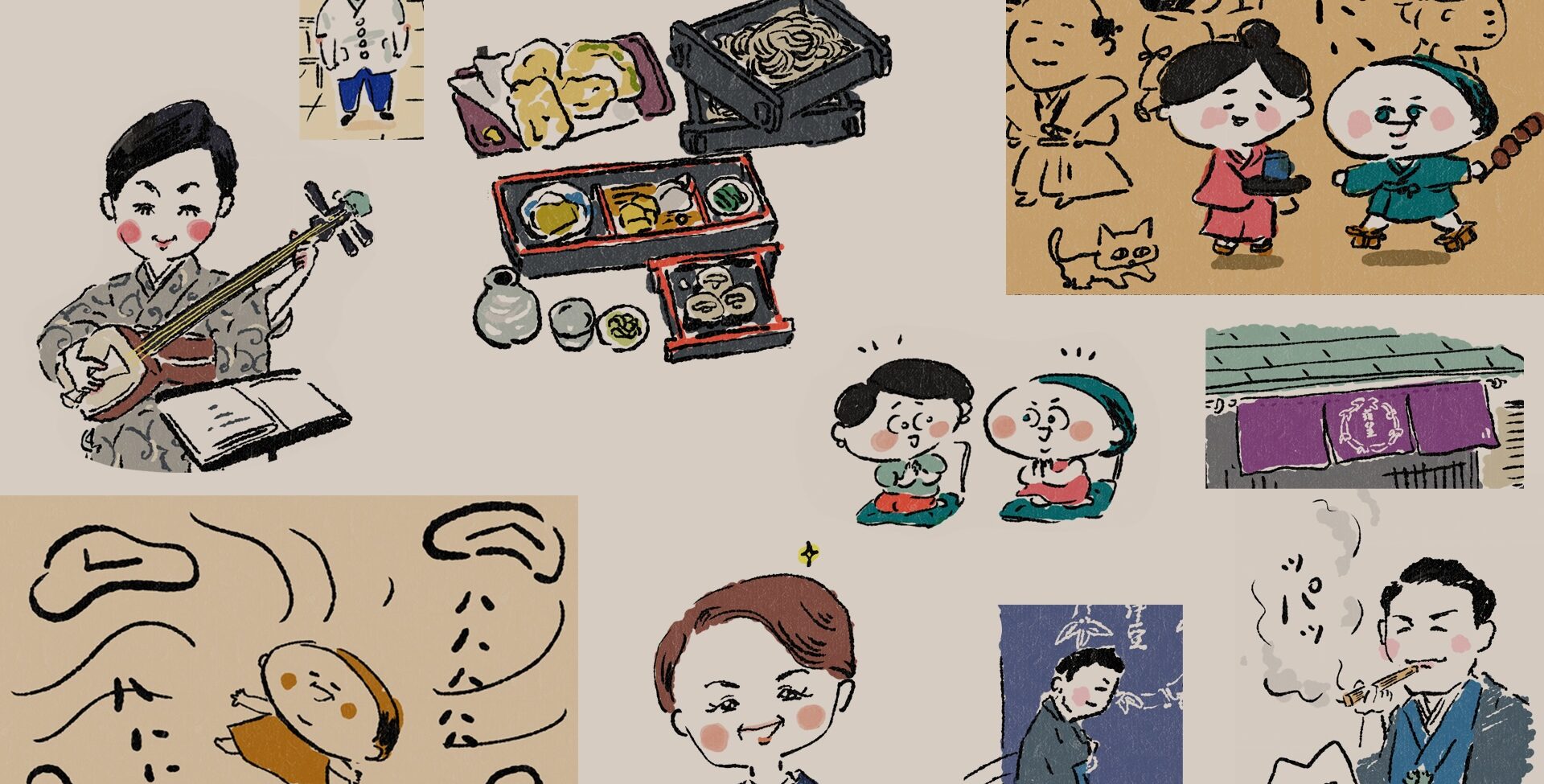 八重洲・日本橋・京橋エリアには、衣食住や趣味・仕事まで本物を知るおとながたくさん。イラストレーターの佐々木千絵が、このまちの”粋”を体験するイラストエッセイ。第8回は、日本橋の老舗そば店『藪伊豆総本店』の三階で開かれている、柳家三語楼さんの落語会へ。江戸の香り漂う座敷で蕎麦を手繰る芸を見、その後リアルに蕎麦をいただく。といった食と芸が立体的に交わる現場からレポートします。