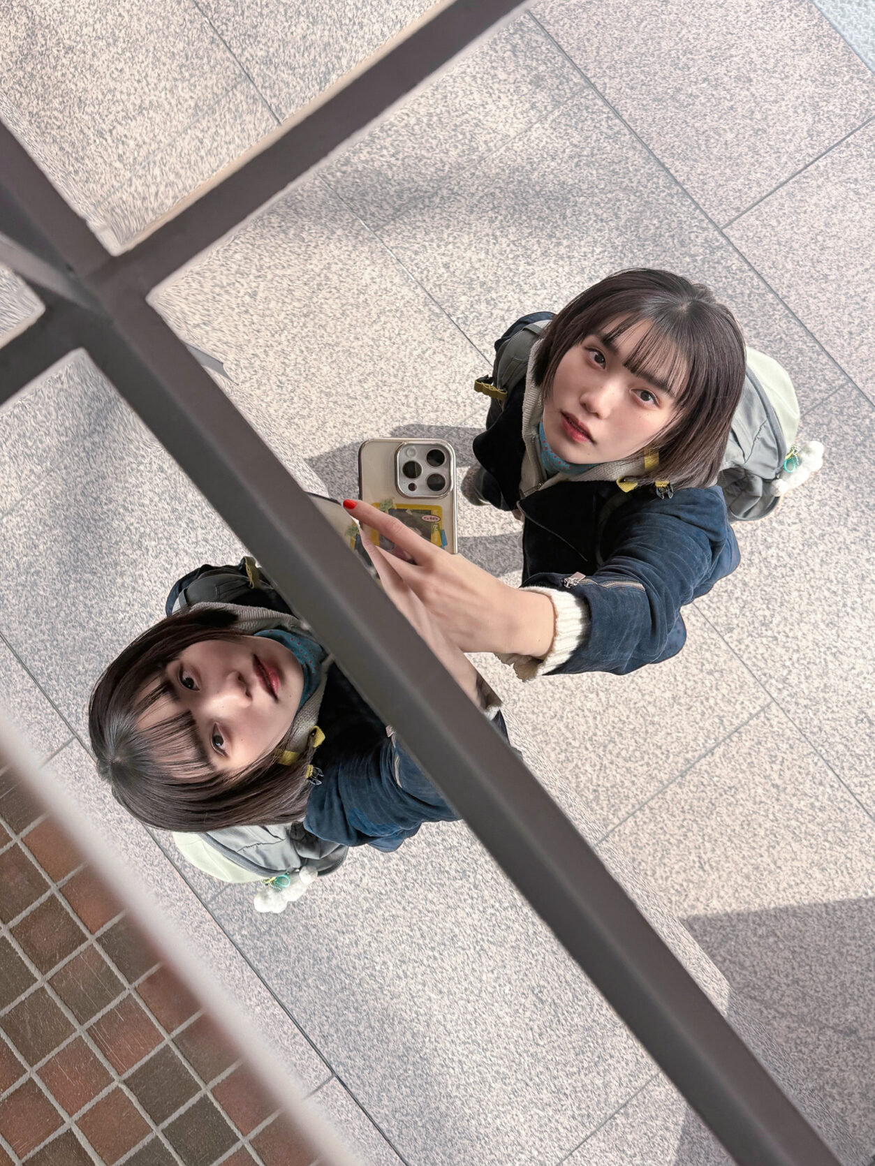 兜町は建物の雰囲気が次々と変わり、気づけばあちこち同じ道を歩いていたりします。突然、視界がぐにゃりと動いたと思うと、新しくできたであろう建物の外観が鏡になっていました。手持ちではない、”野生の鏡”に出合うと、ついテンションがあがります。逆さまに写る自分を見ていると、また別の道にワープしたみたいで、楽しい街歩きでした。