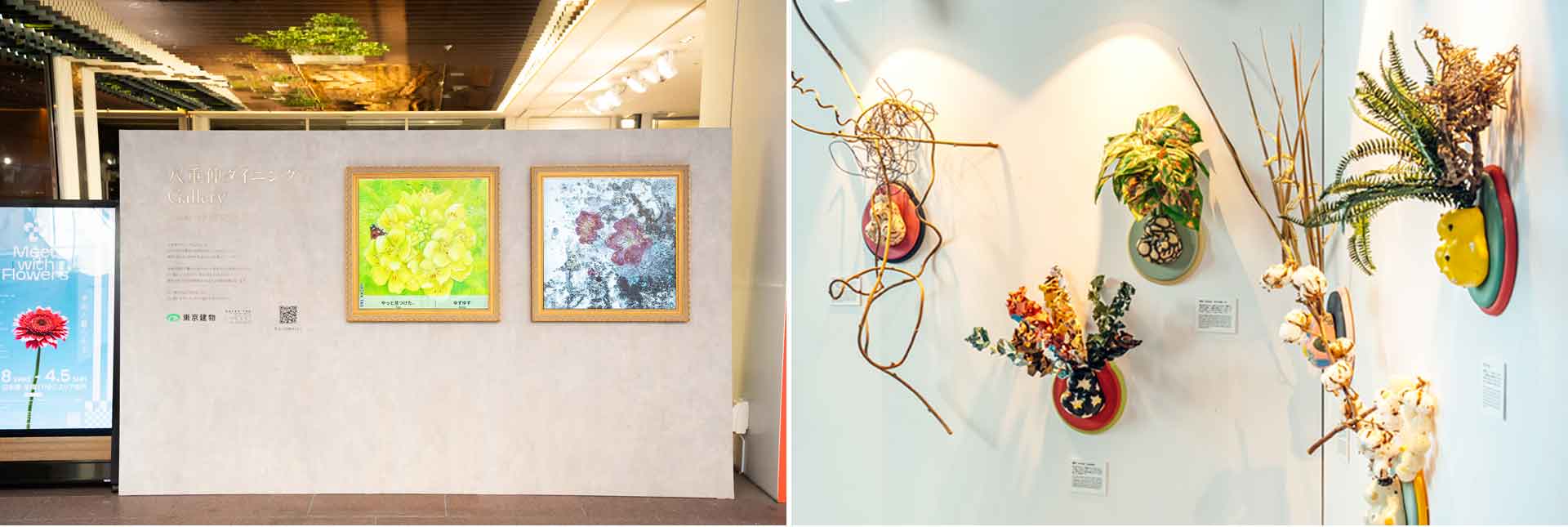 東京建物八重洲ビルB1「八重仲ダイニング」前に登場した「八重仲ダイニングGallery」では、FLOWERをテーマに一般公募し、受賞した17作品をデジタル展示。デジタルギャラリー・HACKK TAGの技術を活用したもので、本格アートをデジタルで気軽に楽しめるように。こちらは4月19日まで展示予定。