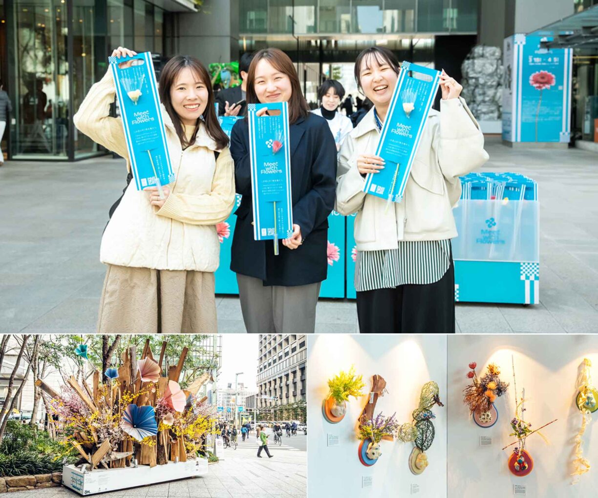 大の園芸好きだった“花癖(かへき)将軍”として知られる徳川家康、2代秀忠、3代家光の影響により、江戸時代に一大ブームとなった園芸文化。江戸のそこかしこに草花が息づき「園芸都市」と称された歴史を継承し、新たな文化を創造するべく2021年からはじまったフラワーイベント「Meet with Flowers」を今年も3月18日〜4月5日に開催。いけばな×現代アートの作品とブルー地にガーベラが咲くイベントビジュアルがYNKエリアを彩り、約1万1千本の花が無償で配られたイベントの様子をレポートします。