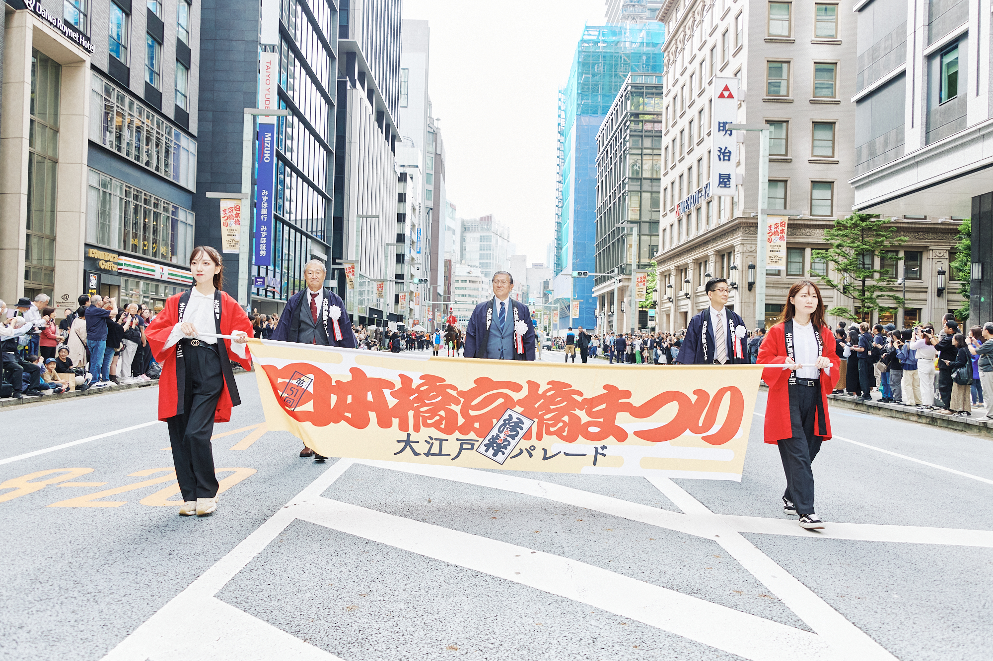 江戸時代、幕府より全国へつながる五街道の起点に定められ、日本の中心として栄えた日本橋。昭和47年(1972年)、街路灯や国道の完成記念として、鼓笛隊や大名行列などのパレードが開催されたのが「日本橋・京橋まつり」のはじまりです。それ以降、毎年10月に実施され、今年で52回目を迎えます。