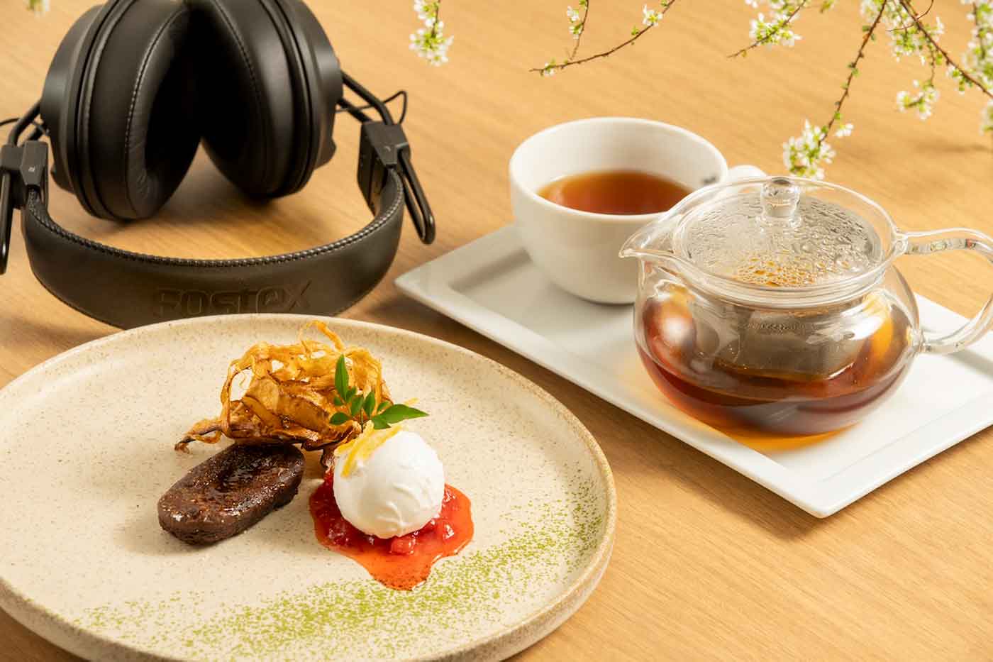 今回提供されるのは、SiKiTO CAFEオリジナルの体験型カフェセット「【和みテリーヌと薫ルTEA 音のときめきセット】― 音楽とナレーションに導かれる、五感ほどけるスイーツ体験 ―」。音楽・ナレーション・ヘッドフォン・タブレットがセットになっていて、視覚をおさえ、音に誘われながらショコラとお茶に集中する体験型のスイーツ時間を楽しむことができる。普段気づきにくい香りや舌触り、余韻などの五感に響く新しい「味わいの時間」を体感できます。