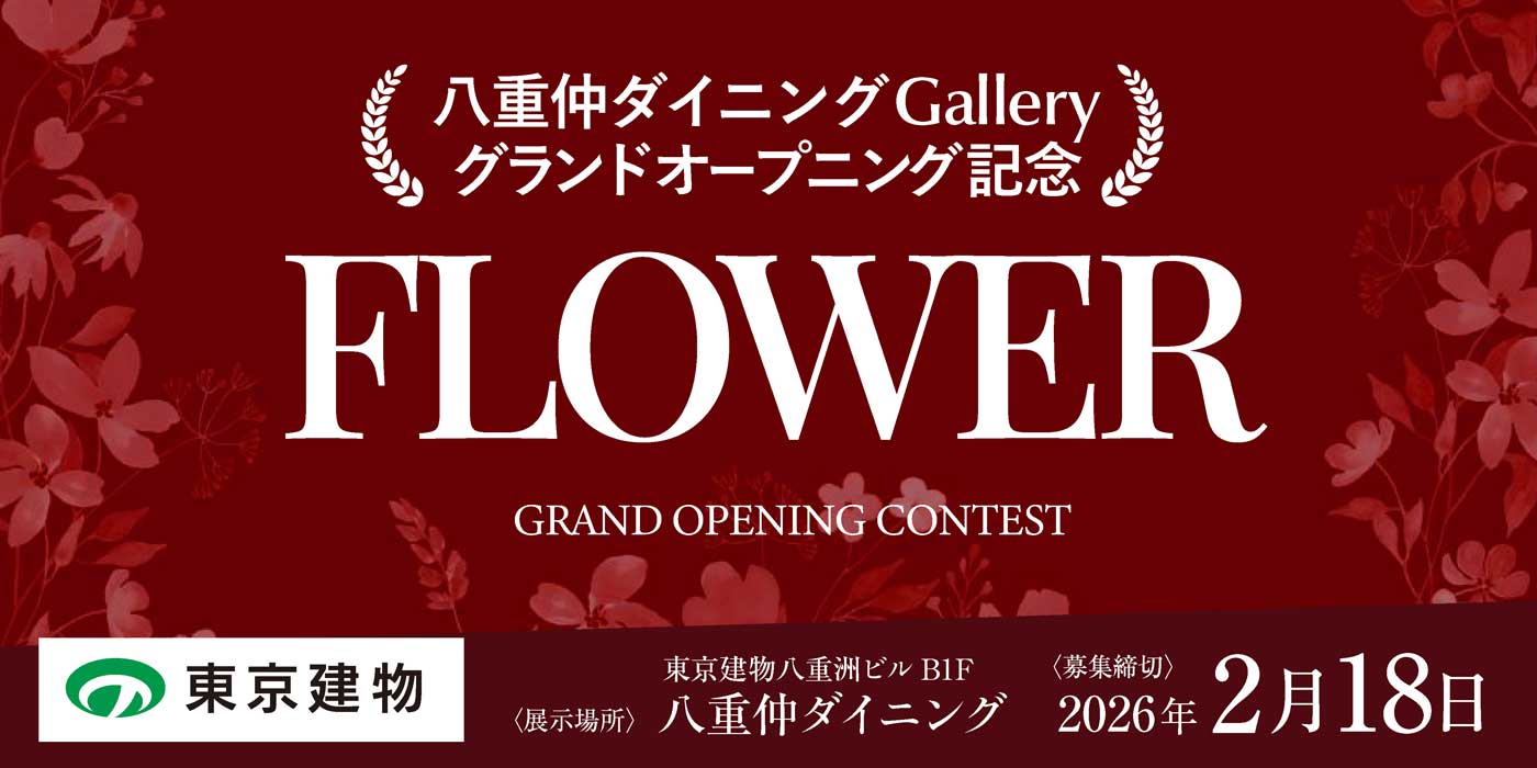 コンテストの募集テーマは、YNK(八重洲・日本橋・京橋)エリア一帯で開催される春の花イベント「Meet with Flowers」と連動した「FLOWER」。国籍、プロ・アマを問わず、アナログ・デジタル作品の応募が可能です。最終選考に残った約15作品はギャラリーのデジタル額縁で配信展示。観光客やエリア来訪者に新たな文化体験を届けていきます。